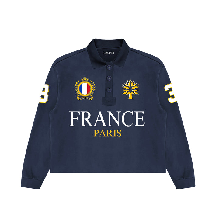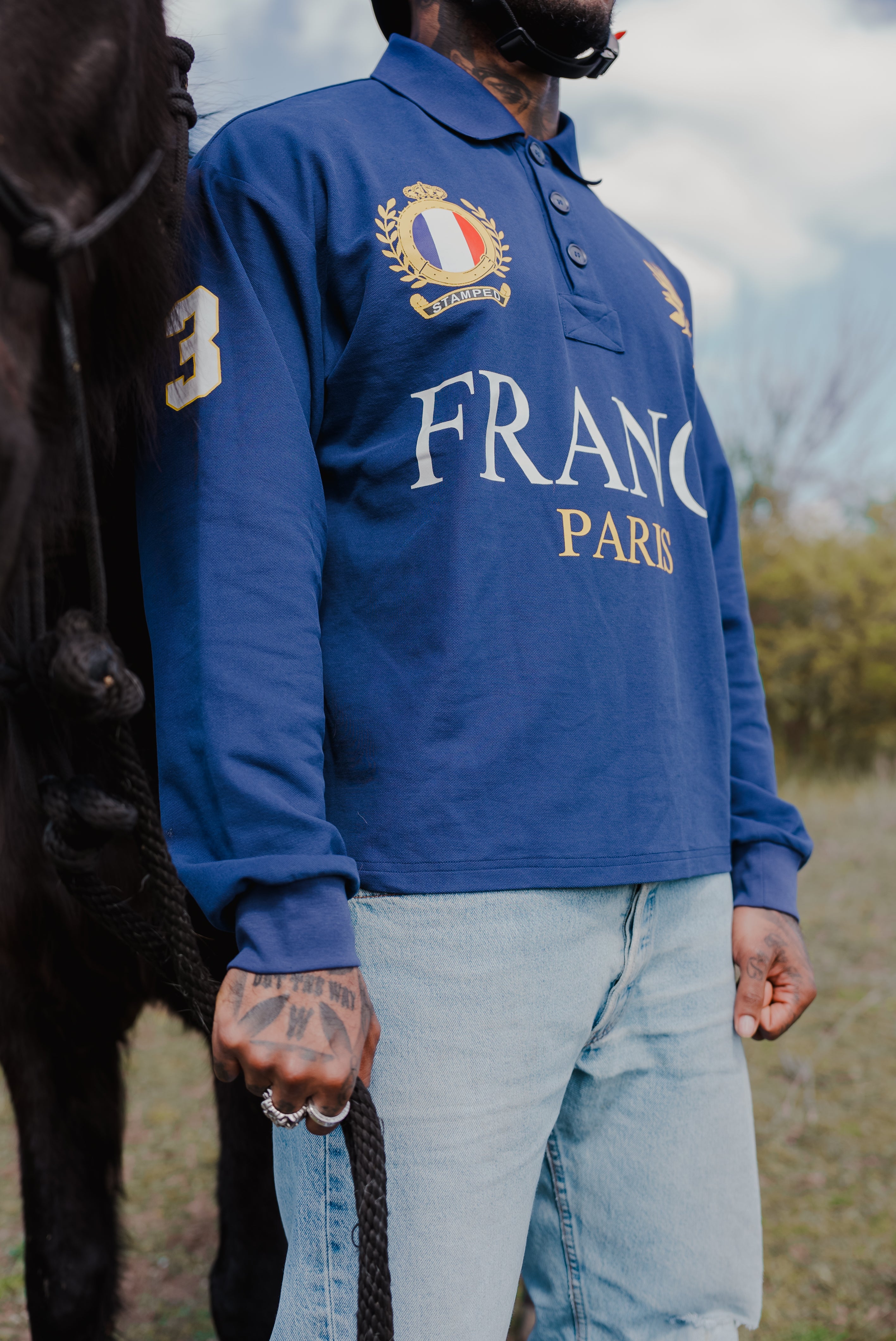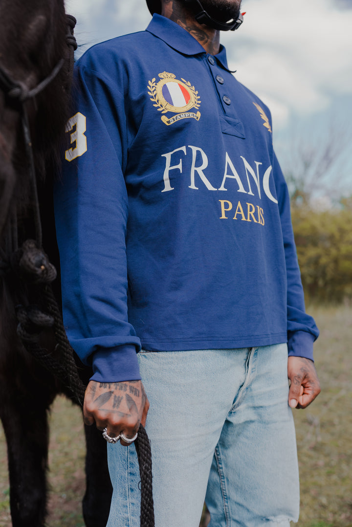 A sculpted polo in 100% Italian cotton with DTG logos, precisely cut in Germany. Pre-made and ships in just 2–5 business days.